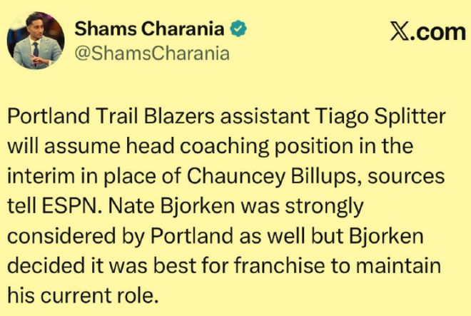 开拓者凌晨紧急官宣换帅!斯普利特取代比卢普斯,杨瀚森又遇贵人